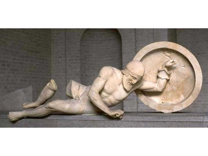 | Раненый воин. Скульптура восточного фронтона храма Афины Афайи на о. Эгина. Около 480 г. до н. э. |