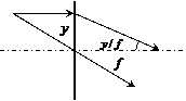 После прохождения через линзу он попадает в фокус, т. е. непосредственно на линзе он задается вектором