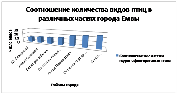 Диаграмма 5. Соотношение численности видов в разных районах города.