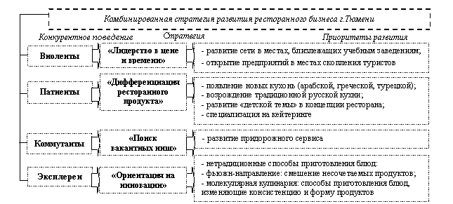 Анализ рынка ресторанных услуг г. Тюмени, его тенденций и перспектив позволил разработать комбинированную стратегию развития ресторанного бизнеса (рис.1).