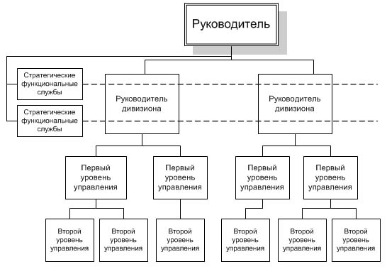 Простое добавление в структуру компании еще одного уровня иерархии приведет в таких условиях тому, что первое лицо компании будет уже не в состоянии принимать стратегических решений по отдельным направлениям деятельности.