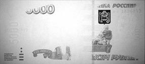 При просмотре лицевой стороны банкноты в ИК-детекторе (рис. 5) имеют характерное свечение имеют часть элементов фонового рисунка (свечение элементов для каждого номинала индивидуально!) в том числе и герб г. Хабаровска. На подделках свечение данного элемента отсутствует.