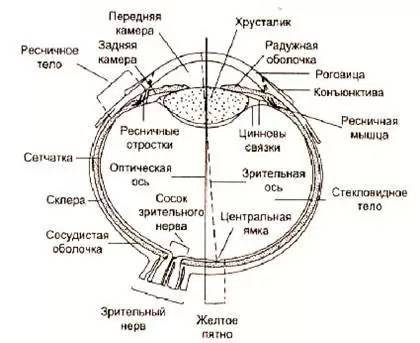 Ø глазное яблоко, в котором расположены световоспринимающий, светопреломляющий и светорегулирующий аппараты;