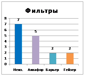 Был проведен анализ использования бытовых фильтров «Аквафор», «Барьер» и адсорбента шунгит для очистки питьевой воды (таблица 3).