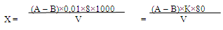 , где VсрHCL - объем раствора кислоты, пошедшего на титрование пробы (мл); NHCl это концентрация соляной кислоты = 0,1 н; . V — объем пробы, взятой для анализа (мл).