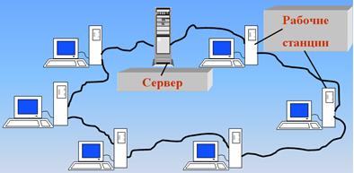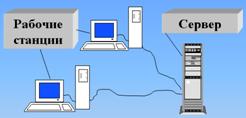 Сеть с выделенным сервером предполагает наличие в своем составе на только рабочих станций (ПК), но сервера. Построение такой сети представлено на рисунке 3.2.
