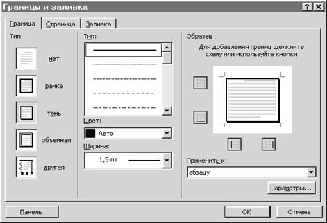 Рис. 7.3. Выбор варианта обрамления абзаца