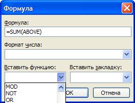 В таблицах, вставленных в документ Word, можно выполнять несложные вычисления. Например, можно подсчитать сумму по столбцу или по строке. Для этого в ту ячейку таблицы, где должен быть результат вычислений, вставляется формула (см. рис. 7.4 и пункт меню Таблица/Формула…)