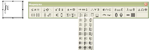 Меню Вставка/Объект позволяет вставить в текст документа видеоклип, диаграмму Excel, формулы и т. д. (см. пояснение технологии OLE в подразделе 6.3). Для вставки сложных формул используют редактор формул, вызываемый командой Вставка/Объект/Microsoft Equation 3.0. Работа с редактором формул иллюстрируется рисунком 7.5.