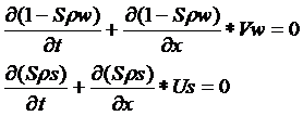 Здесь S - объёмная доля частиц в потоке, ρS - плотность и US - скорость частиц твёрдой фазы, ρW - плотность и VW - скорость воды, x - расстояние, t - время. Для качественной оценки зависимости гидродинамической крупности осадка ω от расстояния до береговой линии Х или глубины бассейна Н, в допущении, что они линейно связаны между собой, т. е. Х = kН, можно получить общий вид приближенного решение системы уравнений Сен-Венана: