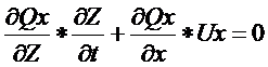 Известно, что на протяжении достаточно продолжительного интервала t между глубиной бассейна, т. е. координатой Z, и временем существует вполне значимая связь. Это позволяет произвести замену переменных и представить для всего осадочного бассейна второе уравнении системы Сен-Венана в виде: