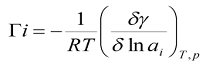 здесь Гi - концентрация i-ого компонента на поверхности раздела фаз (моль/м2), γ - поверхностное натяжение на поверхности раздела (Дж/м2), аi - активность i-ого компонента в жидкой фазе. Из уравнения (4.3) следует, что вещества, снижающие поверхностное натяжение