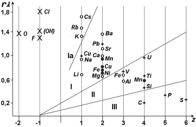Все эти катионы относятся к группе I диаграммы Гольдшмидта, для которой величины ионного потенциала достаточно только для поляризации молекул воды в гидратно-ионном комплексе, на поверхности которого локализуются группы (ОН), давая раствору щелочную рН (щелочные и щёлочноземельные катионы). Они формируют относительно легко растворимые водой минералы. В межслоевом пространстве смектита двухвалентные катионы координируют две сетки молекул Н2О, а одновалентные Li+ и Nа+ - одну (см. Приложение). Ввиду низкого ионного потенциала К+, Rb+, Сs+ не образуют гидратно-ионных комплексов, что облегчает их сорбцию минералами и не даёт возможность формировать непрерывные сетки Н2О в межслоевом пространстве смектитов. Это так называемые «антистоксовские» катионы, их движение в растворе не подчиняется закону Стокса. Как следствие, при химической близости Nа+ и К+ они являются геохимическими антиподами: К+ «не доходит» до бассейнов, а Nа+ преимущественно накапливается уже в океанах и эвапоритах.