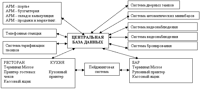 Системы управления гостиницами стыкуются с различными смежными программно-аппаратными комплексами: □бухгалтерской системой;