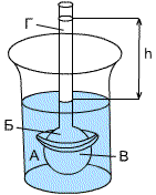 Простейший осмометр: А - сосуд с растворителем, Б - трубка с раствором, В