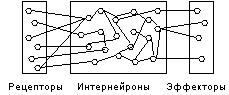 Нейронов случайное число и соединены они случайно. Требуется построить алгоритм соединения, после которого модель будет действовать целесообразно.