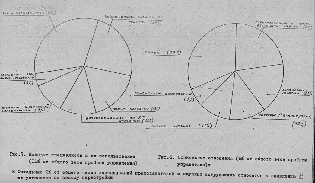 Общая установка участников опроса – позитивная. 80% из ответивших на открытые вопросы, независимо от должностных позиций, ожидают положительных результатов от текущего процесса перестройки, из них 50% – настроены оптимистически: "Основные направления перестройки продиктованы временем"; а 30% требуют усиления контроля за перестройкой; 20% – имеют скептическое отношение. Симптоматично, что преодоление трудностей перестройки опрашиваемые связывают с необходимостью повышения социальной роли образования в целом. "Перестройка, высшего образования должна опережать перестройку в других сферах нашего общества. Пока много говорят о "человеческом факторе", но не связывают это с образованием" (Томский политехнический).