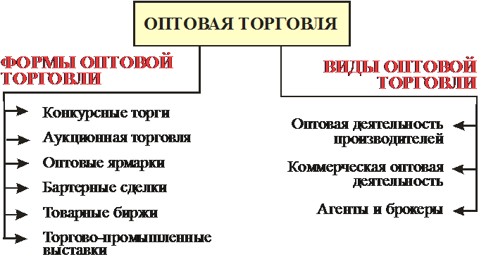 Рис.70. Формы оптовой торговли и виды организации оптовой деятельности
