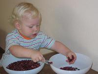 4. Игры с крупами: перебирать в разные ёмкости перемешанные горох и фасоль, а затем и более мелкие крупы; пересыпать и перемешивать крупы, растирать в руках.