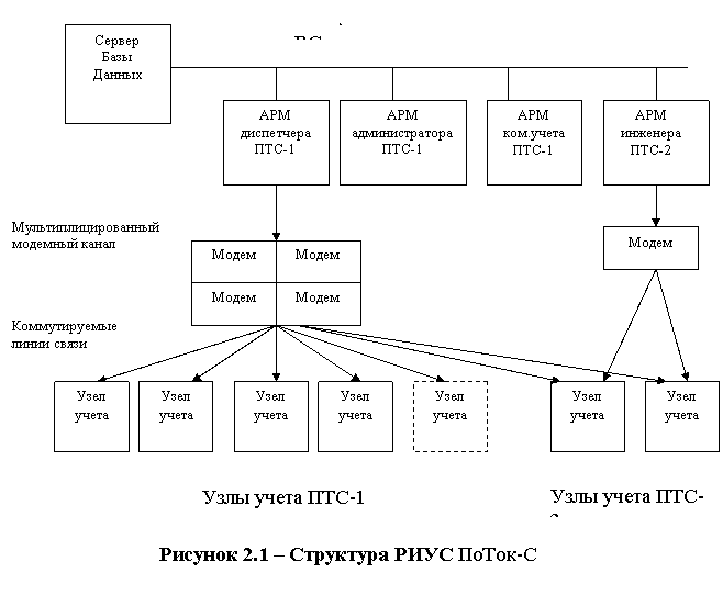 С учетом опыта эксплуатации предыдущей версии системы, использование которой становится проблематичным при числе узлов порядка 100, в концепцию проекта РИУС ПоТок-С заложено требование обеспечения возможности развития системы по числу контролируемых объектов. Для реализации этого требования в подсистеме ПТС-1 используется СУБД ORACLE и мультиплицированный модемный канал.