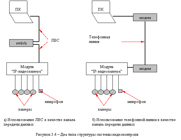 Следует отметить, что модуль IP-видеокамера (вместе с видеокамерами и микрофоном) устанавливается непосредственно на объекте, за которым необходимо установить видео наблюдение. Разрабатываемое высокоуровневое ПО должно быть установлено на ПК в диспетчерском пункте (на АРМ инженера или оперетора).