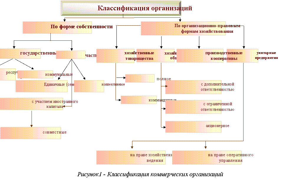 По организационно–правовой форме | Хозяйственные общества, хозяйственные товарищества, производственные кооперативы, унитарные предприятия |