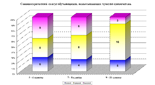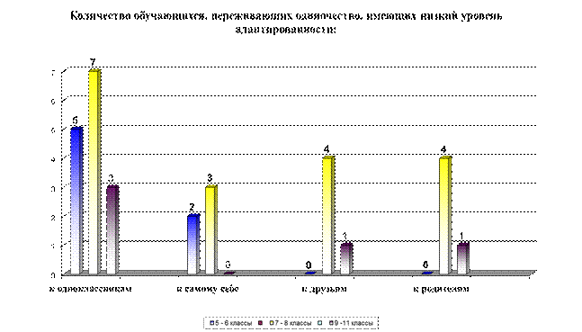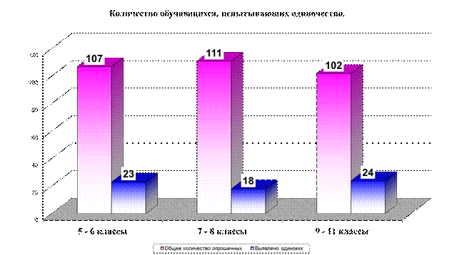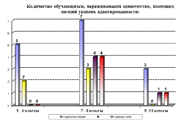 - среди обучающихся 7-8 классов выявлено наименьшее количество подростков, испытывающих чувство одиночества;