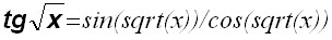 Ранее мы уже говорили, что в Pascal функция тангенса расписывается как синус деленный на косинус. В приведенном примере аргументом как синуса так и косинуса служит функция квадратного корня sqrt(x), аргументом которого в свою очередь является переменная х.