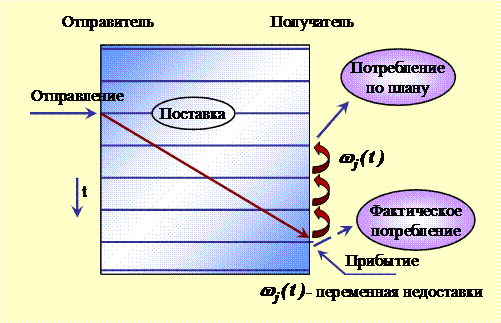 – расчетными моментами прибытия груза при случайном разбросе в потреб-лении. Уменьшается ущерб от неудовлетворительного потребления.