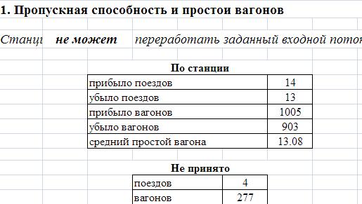 Таблица 1 – Показатели работы ст. Южная-Лужская при увеличенном прибытии