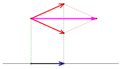 Пусть ортогональные проекции (на некоторую прямую) двух различных векторов, имеющих одинаковую длину, равны одному и тому же вектору. Тогда сумма этих двух векторов равна удвоенной проекции.