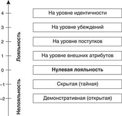 Шкала имеет нулевую точку, обозначающую так называемую нулевую лояльность. Наличие этой точки принципиально важно, поскольку демонстрирует, что отсутствие лояльности не является нелояльностью. Нулевая лояльность может быть у постороннего человека, не сформировавшего своего отношения к определенному объекту. Близкой к этой отметке может быть лояльность к компании у человека, поступающего туда на работу, но не информированного об особенностях ее корпоративной культуры.