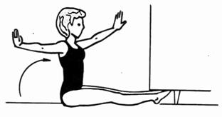 1. И. п. — лежа на спине, руки вытянуты вверх на полу, пальцами ног зацепитесь за край дивана или шкафа. Сделав энергичный мах вперед руками, сядьте. Старайтесь при этом не отрывать пяток от пола. Выпрямите спину, разведите руки в стороны, затем несколько раз отведите их резко назад. Медленно вернитесь в исходное положение. Повторить 6-8 раз.
