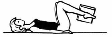 2. И. п. — лежа на спине, руки вдоль туловища, ноги поднять и согнуть в коленях, зажать ступнями книгу. Поднимать и опускать голени, удерживая ноги на весу. Повторить 10-12 раз.