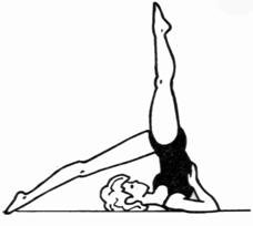 3. И. п. — стойка на лопатках («березка»). Прямую левую ногу опустить за голову как можно дальше, стараясь коснуться пальцами ноги пола. Повторить 4—6 раз. То же самое выполнять правой ногой.