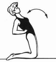 4. И. п. — стоя на коленях, руки вытянуты вдоль тела. На вдохе отклонить туловище назад. Спину следует держать прямо, подбородок поднять. На выдохе вернуться в и. п. Повторить 8-10 раз.