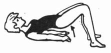 3. И. п. — лежа на спине, руки вдоль тела ладонями вниз, ноги расставлены на ширину ступни и согнуты в коленях. На вдохе, напрягая ягодицы, поднимите таз как можно выше и удержитесь в этом положении 5-7 секунд. На выдохе вернитесь в и. п. и расслабьтесь. Повторите 5-7 раз.