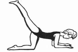 4. И. п. — стоя на четвереньках, поставьте прямую правую ногу на носок, затем поднимите ее назад как можно выше. Задержитесь в этом положении 5—7 секунд. Вернитесь в и. п. То же — другой ногой. Повторите 6—8 раз каждой ногой.