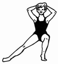1. И. п. — руки положить на затылок, согнуть левую ногу в колене, правую вытянуть в сторону. Меняя положение ног, переносить тяжесть тела попеременно то на одну, то на другую ногу. 8—10 раз.