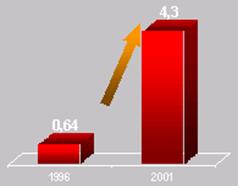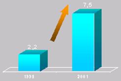 Рост в период гг. составил 54 %, а наибольшее значение было зафиксировано в 1997 году – 167 %.