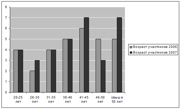 Из приведённой диаграммы видно, что конкурс пользуется популярностью у всех возрастных категорий педагогов, в возрасте от 25 и свыше 50 лет.
