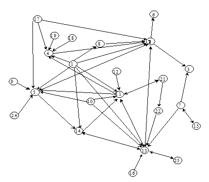 В традиционных массивах социологической информации достаточно редко регистрируются структурные переменные. Поэтому реализация сетевых моделей достаточно трудоемка и предполагает разработку специального полевого инструмента, фиксирующего с той или иной надежностью признаки отношений, имеющие вид двуместных предикатов типа Rxy. Один из таких источников сетевых данных, основанный на регистрации опросных сведений об обменах между домохозяйствами, представлен в 4 главе диссертации. Более широкий круг источников сетевых данных содержится в текстовых массивах нарративного типа, в частности, в исторических документах и литературных произведениях, где можно создавать сетевые переменные на основе установления связей в «концептосфере» данного текста, например персоналиями, институтами, событиями или представлять в виде сети синтагматические структуры[13]. В современных информационных массивах имеется релевантная информация о трансакционных связях между фирмами, которая позволяет без специальных преобразований создавать сетевые модели. Такого рода данные использовались в исследовании прямых межорганизационных связей, например Б. Минца и В. Шварца или Р. Барта[14]. Наиболее релевантные источники сетевых данных содержатся в наукометрических исследованиях цитатной коммуникации. Сам институт цитирования является «естественной» социальной сетью, анализ которой стал исключительно важным направлением информатики и науковедения. Л. Ливероу, Д. Вайт и Г. Макканн разработали сетевую модель совместного цитирования как маркер тематической близости авторов и школ[15]. Другое применение сетевой модели научной коммуникации предложено диссертантом (глава 4) на материале биографических интервью российских социологов. В последние годы предпринимаются специальные проекты по сбору сетевых данных. Л. Веллер, Д. Корат и Р. Милардо создали архив дневников в записями контактов информаторов за определенный период времени, К. Хиггинс изучал внутриорганизационные сети по данным, собранным с помощью анализатора потока телефонных звонков. Можно предположить, что развитие систем компьютерного ассистирования в массовых опросах[16] позволит значительно расширить круг сетевых источников.