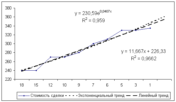 - с использование линейного тренда ≈348 тыс. руб.; с использование экспоненциального тренда ≈353 тыс. руб.