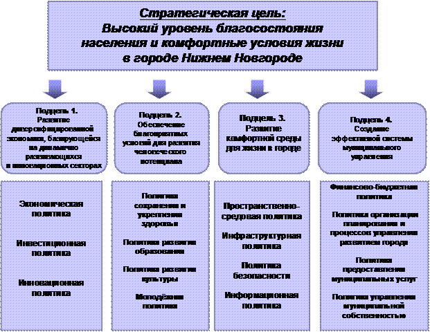 Рисунок 13 – Взаимосвязь стратегической цели, подцелей и основных направлений социально-экономического развития города Нижнего Новгорода до 2030 года