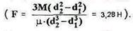 25°. Вращение от двигателя к ведущим колесам автомобиля передается через ряд устройств, одно из которых, называемое сцеплением, позволяет в случае надобности отключить двигатель от остальных устройств. Сцепление, в принципе, состоит из двух одинаковых фрикционных накладок, прижимаемых друг к другу сильными пружинами. В автомобиле "Жигули” фрикционные накладки имеют форму колец с внутренним диаметром d1 = 142 мм и наружным диаметром d2 =203 мм. Коэффициент трения прокладки по прокладке m = 0,35. Найти наименьшую силу F, с которой нужно прижимать накладки, чтобы передавать вращательный момент М=100Нм.