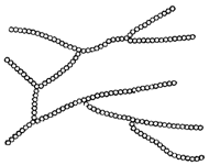 Крахмал - полисахарид с молекулярной массой до нескольких тысяч кДа, содержащийся в растениях. Состоит из двух фракций: амилозы и амилопектина. Амилоза - линейный полисахарид в форме спирали, состоящий из нескольких тысяч остатков глюкозы, соединенных 1à4 связью. Амилопектин - разветвлённый полимер. Остатки глюкозы в линейных участках полисахарида связаны 1à4 связями, а в точках ветвления имеются дополнительные 1à6 связи. Амилоза и амилопектин образуют окрашенные комплексы с йодом: первый даёт комплекс синего цвета, второй - красного.
