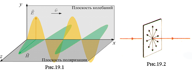 распространения волны (рис.19.1). При рассмотрении поляризации обычно все рассуждения связывают с плоскостью колебаний вектора напряженности электрического поля