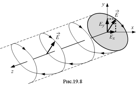 различают правую и левую эллиптическую и круговую поляризацию. На рис.19.8 поляризация – левая (конец вектора