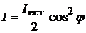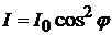 I0 – интенсивность падающей на анализатор линейно поляризованной волны, φ – угол между главной плоскостью анализатора и плоскостью колебаний падающей на анализатор волны.