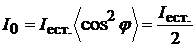 В естественном свете все значения φ равновероятны. Поэтому доля света, прошедшего через поляризатор, будет равна среднему значению , т. е. ½ (см.(19.1)):